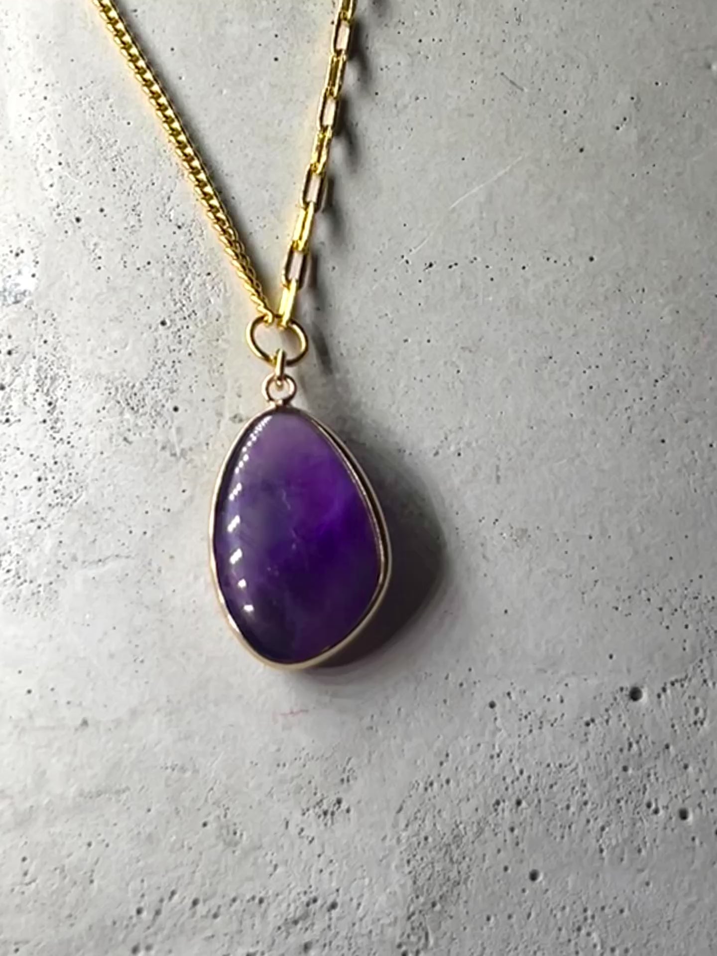 Gold Vermeil 18k Choker mit poliertem Amethyst Edelstein in Tropfenform eingefasst. Die Choker hat eine Gesamtlänge von 44.5 cm. Der eingefasste Amethyst hat eine Länge von ca. 2.5-3cm.