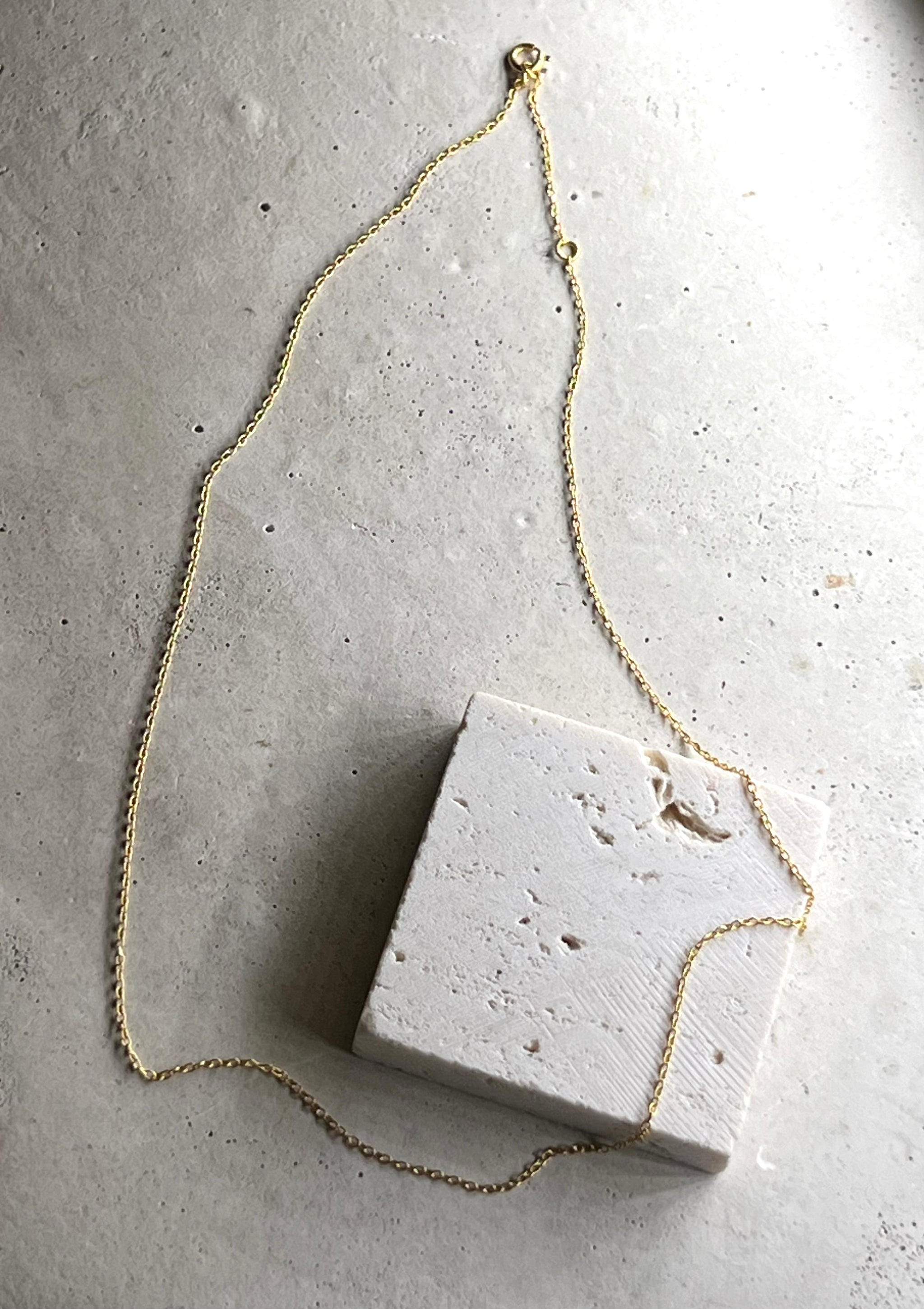 Halskette aus 925 recycled Sterling Silber & zu 18k vergoldet, in einer Gesamtlänge von 45 cm. Die Halskette ist im einfachen Ankerkettenstil angefertigt. Die Kette ist sehr leicht und fein ausgearbeitet.