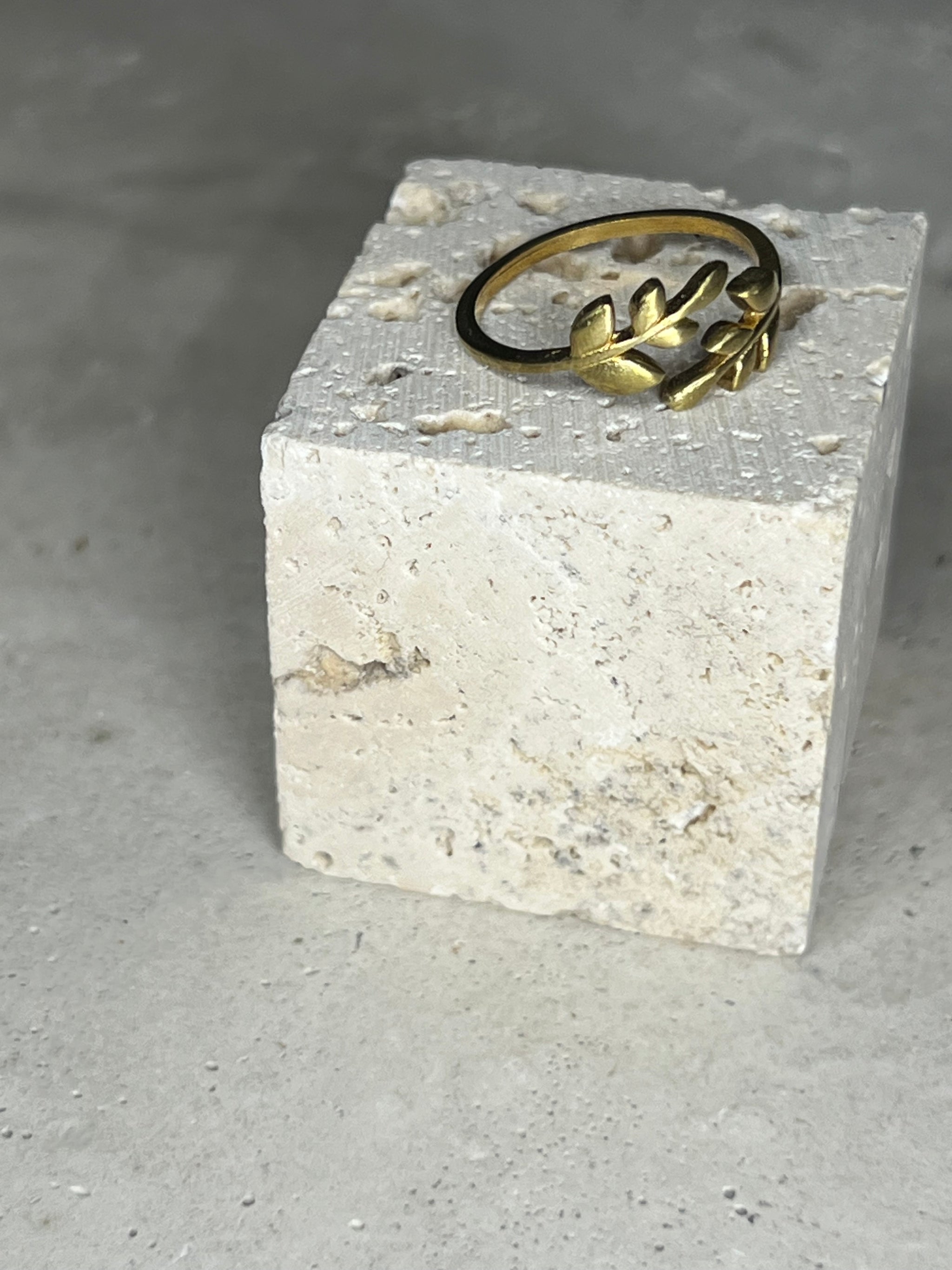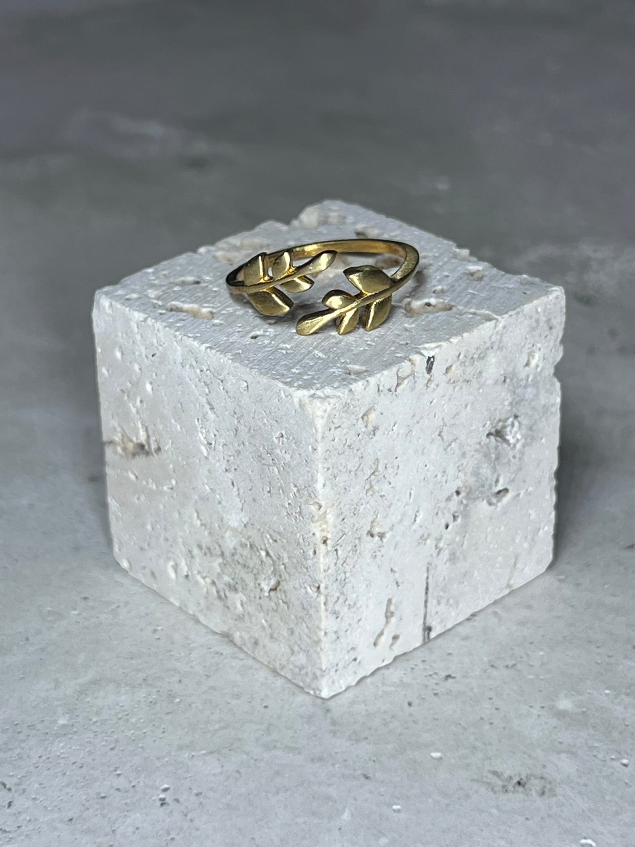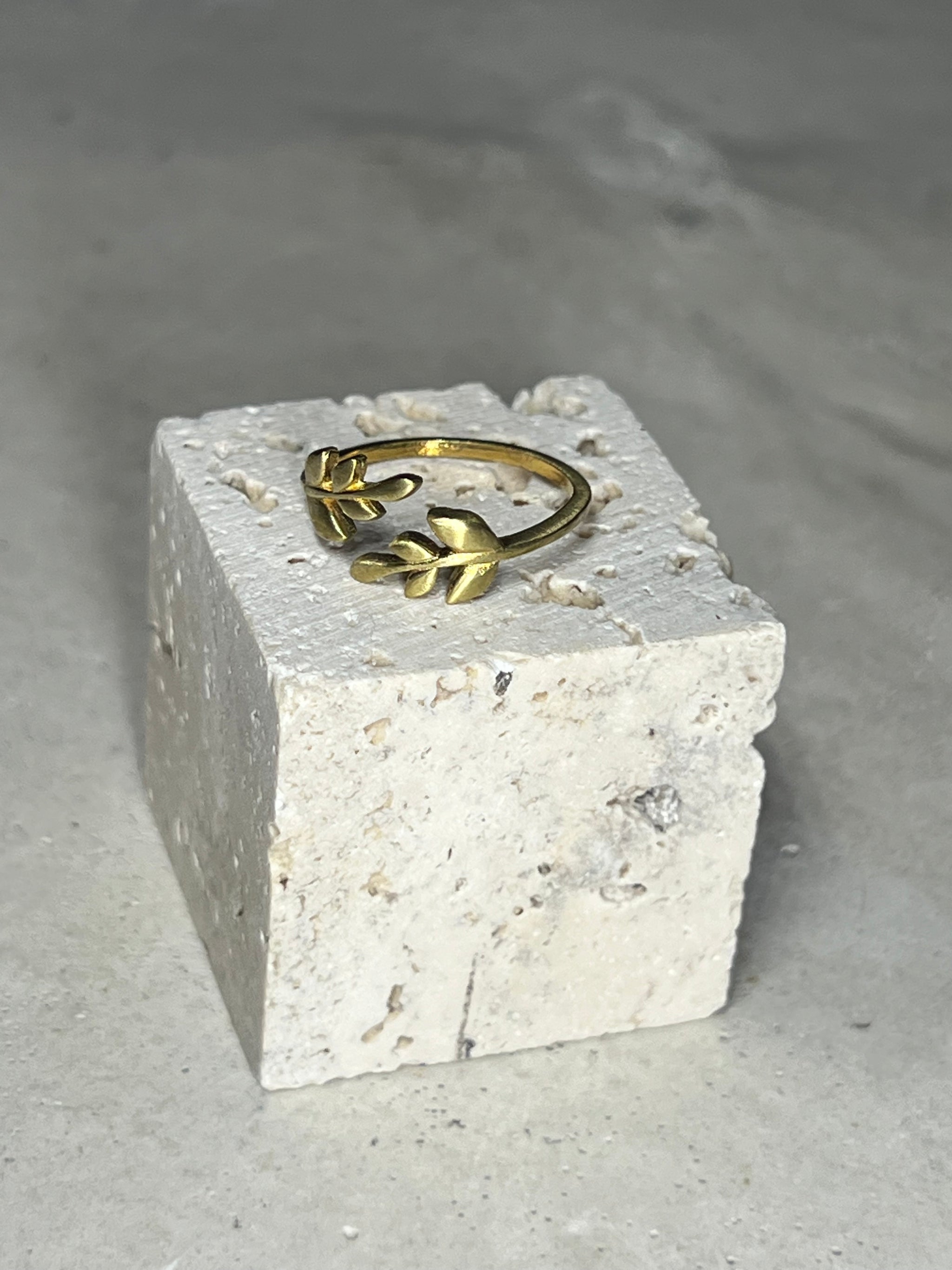 Blattförmiger Ring, fein und schmal mit Blatt-/Pflanzenformen aus hochwertigem, nickelfreiem Messing angefertigt. Der Ring ist größenverstellbar.