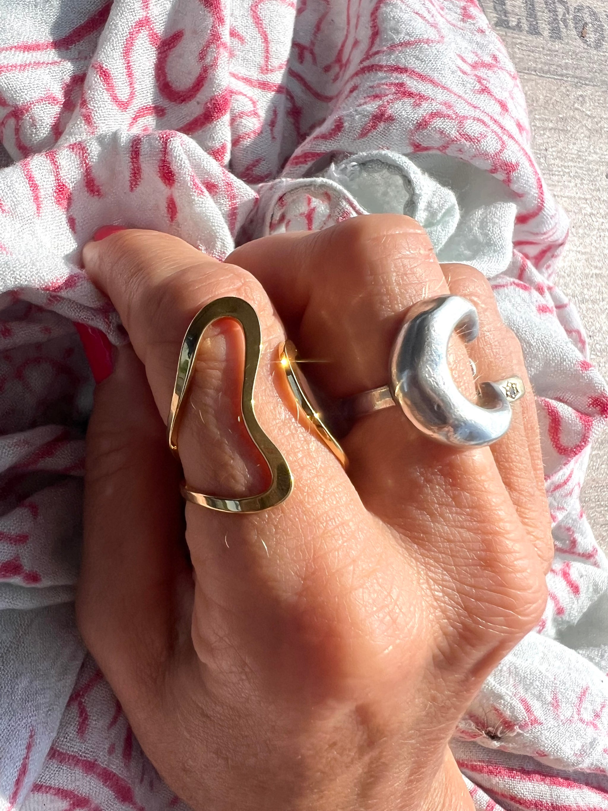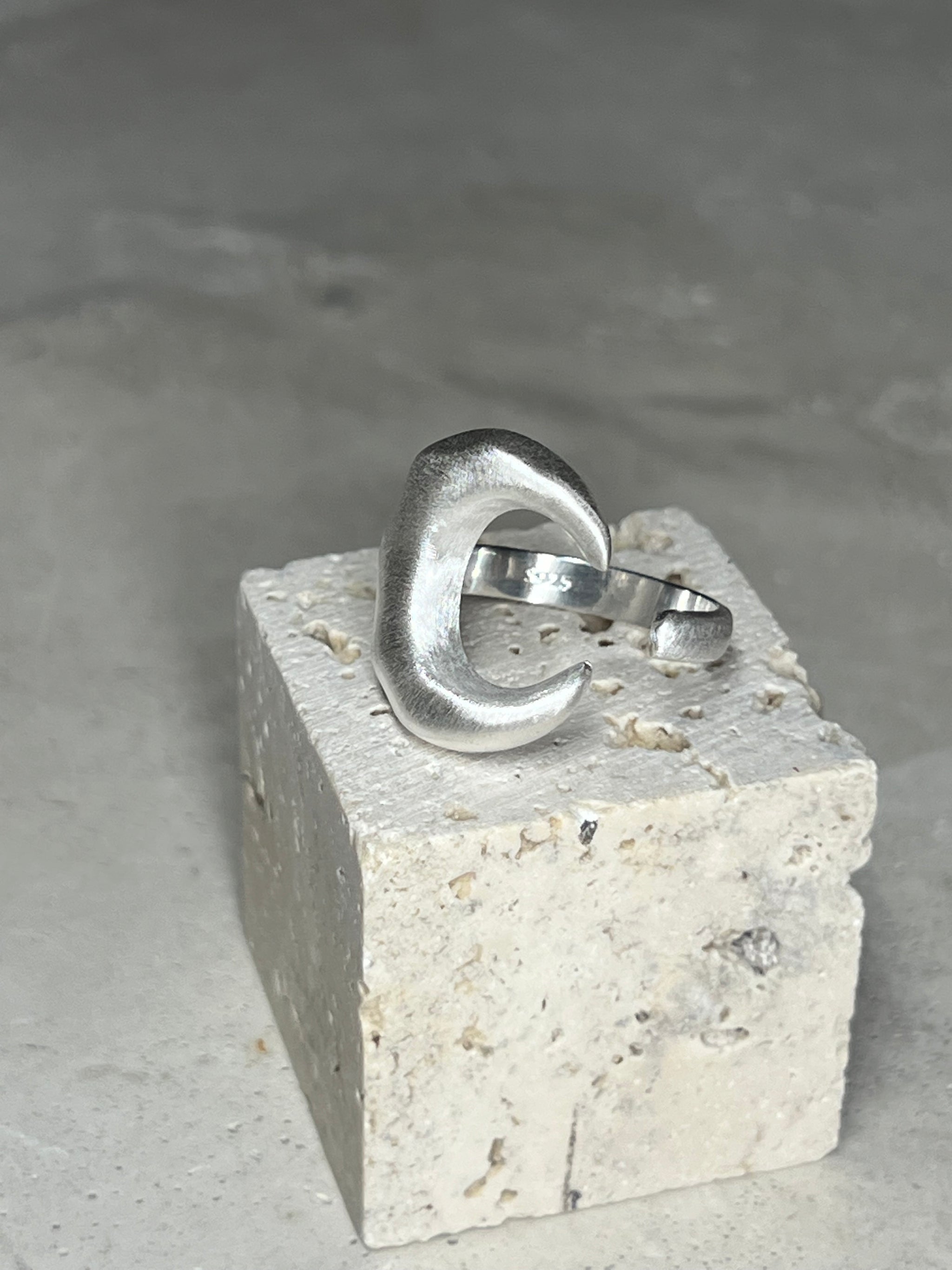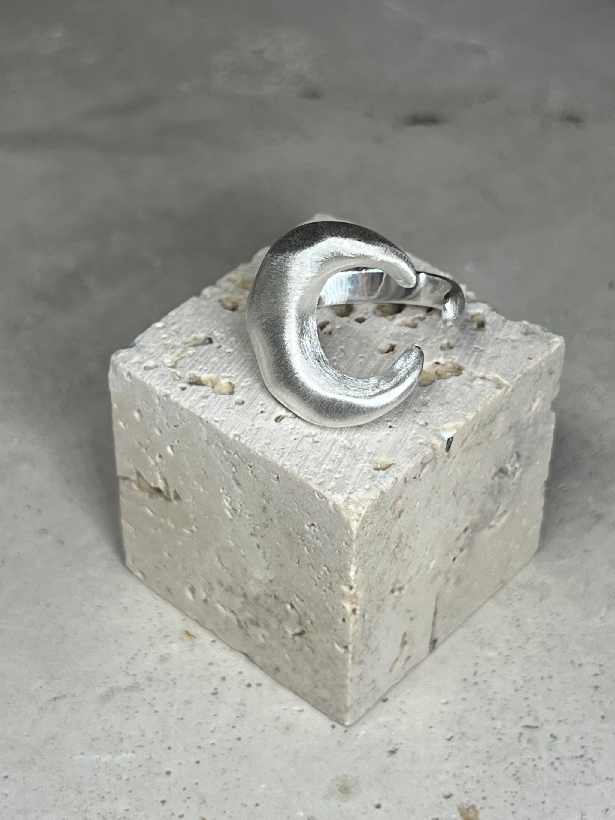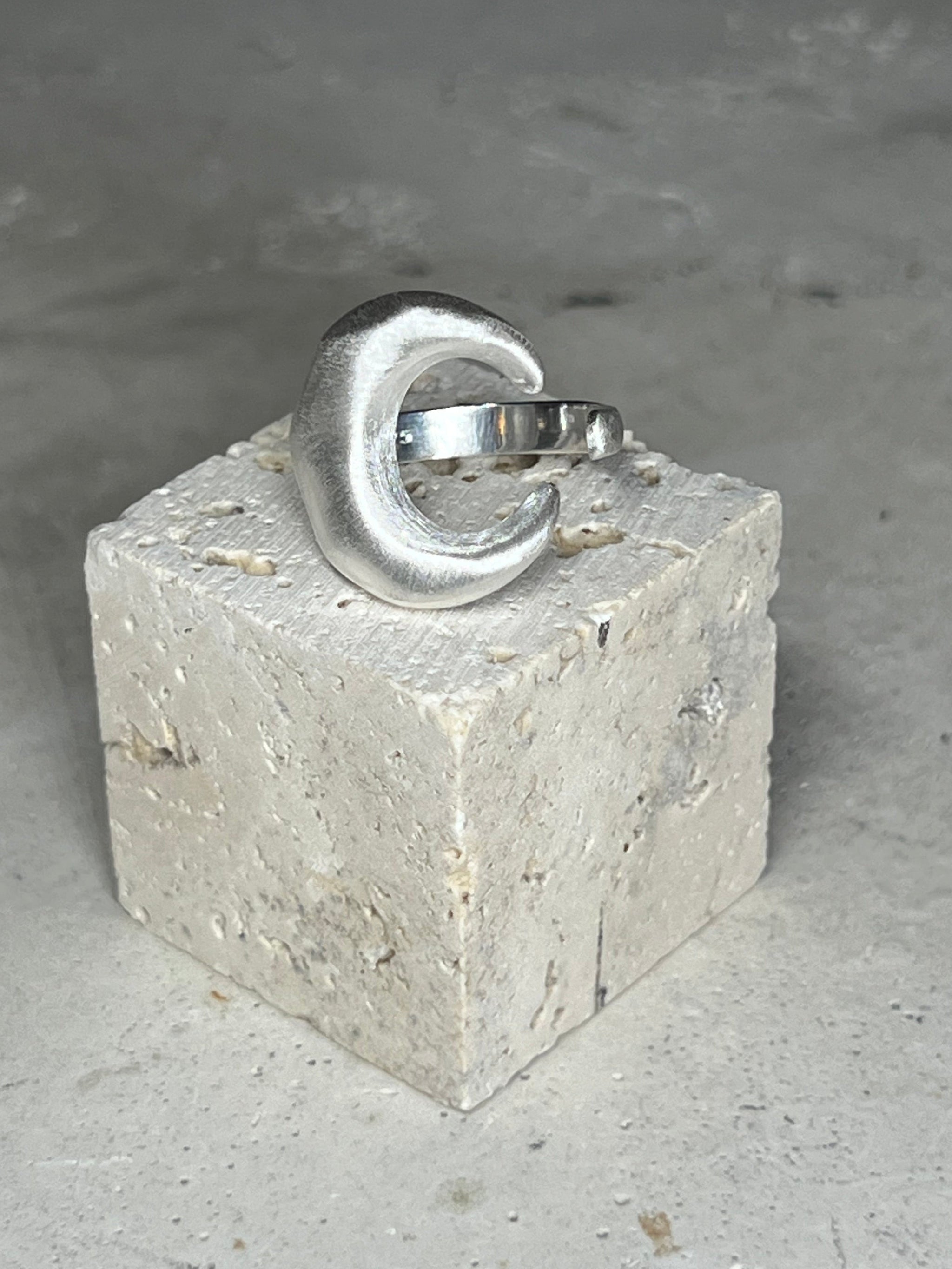 925 recycled Sterling Silber Ring / Gußring / in massiver Halbmondform. Die Oberfläche ist fein poliert und wird mit der Zeit durch das tragen hochglänzend werden. Der Ring ist nicht geschlossen und somit größenverstellbar.