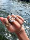 Bitte bewahre Deinen Schmuck immer trocken auf und trage diesen nicht beim Schwimmen oder Duschen. Die Chemikalien in Pools oder Salz aus den Ozeanen können Metalle reizen. Eine trockene Aufbewahrung von Silber- und Messingschmuck schützt vor Oxidation. Es sei denn Dir macht es nichts aus und Du liebst diese Patina.