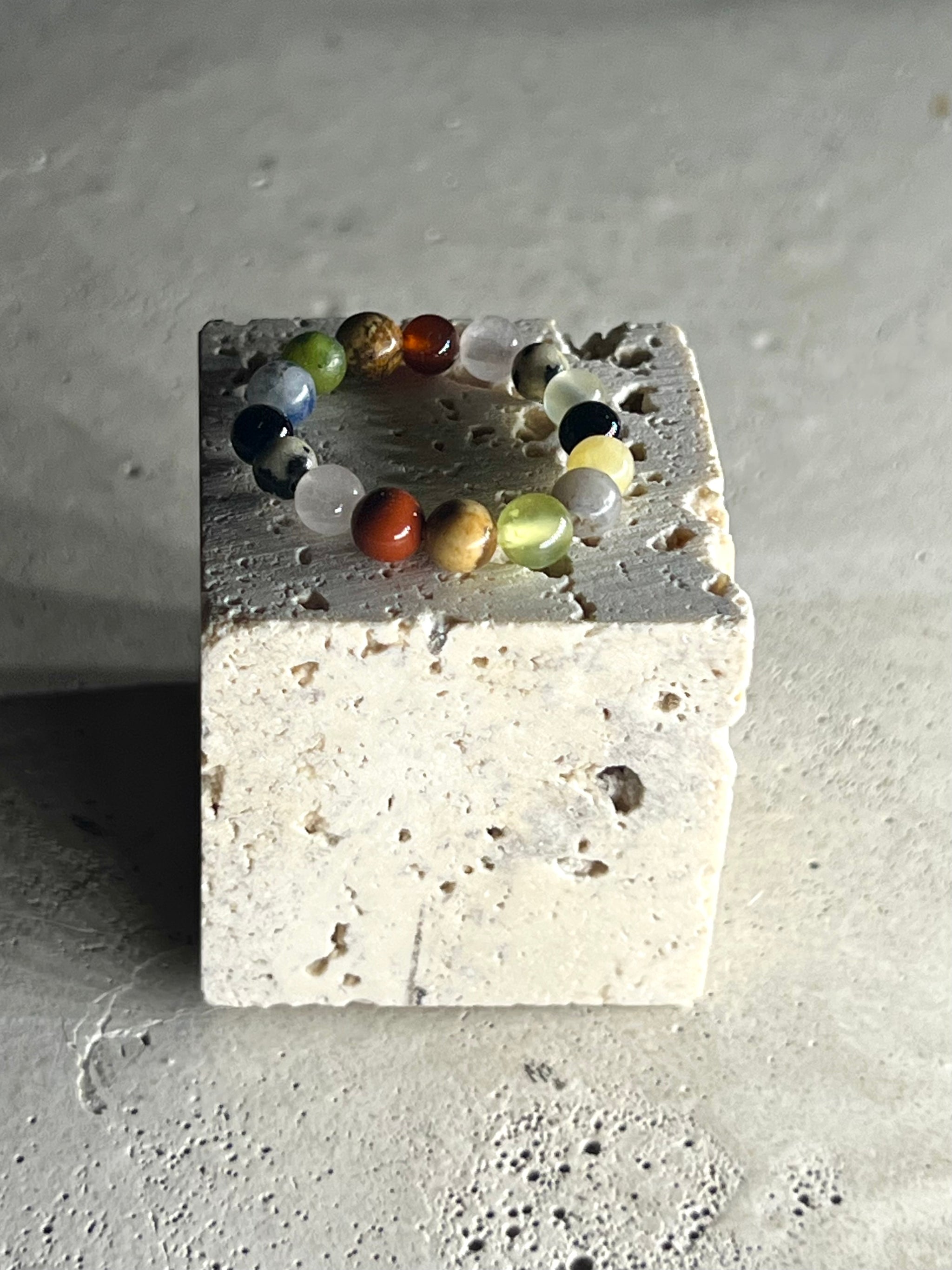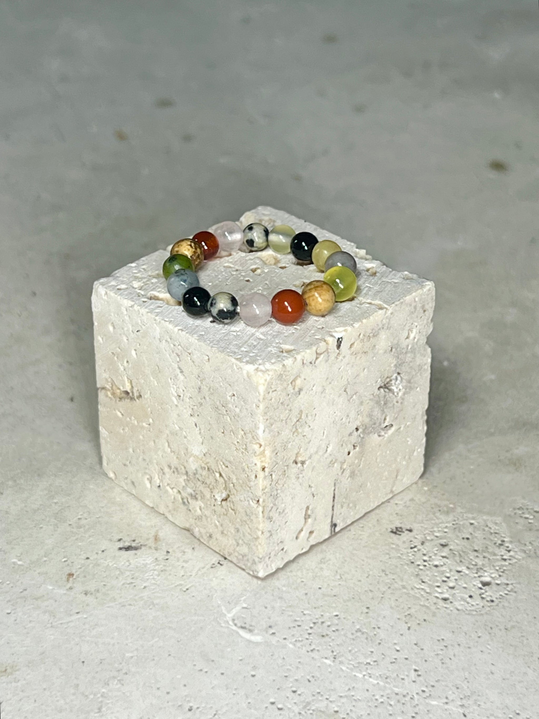 Edelstein Perlen Ring mit verschiedenen Edelsteinen in Gummizug, somit variabel an den Fingern tragbar.