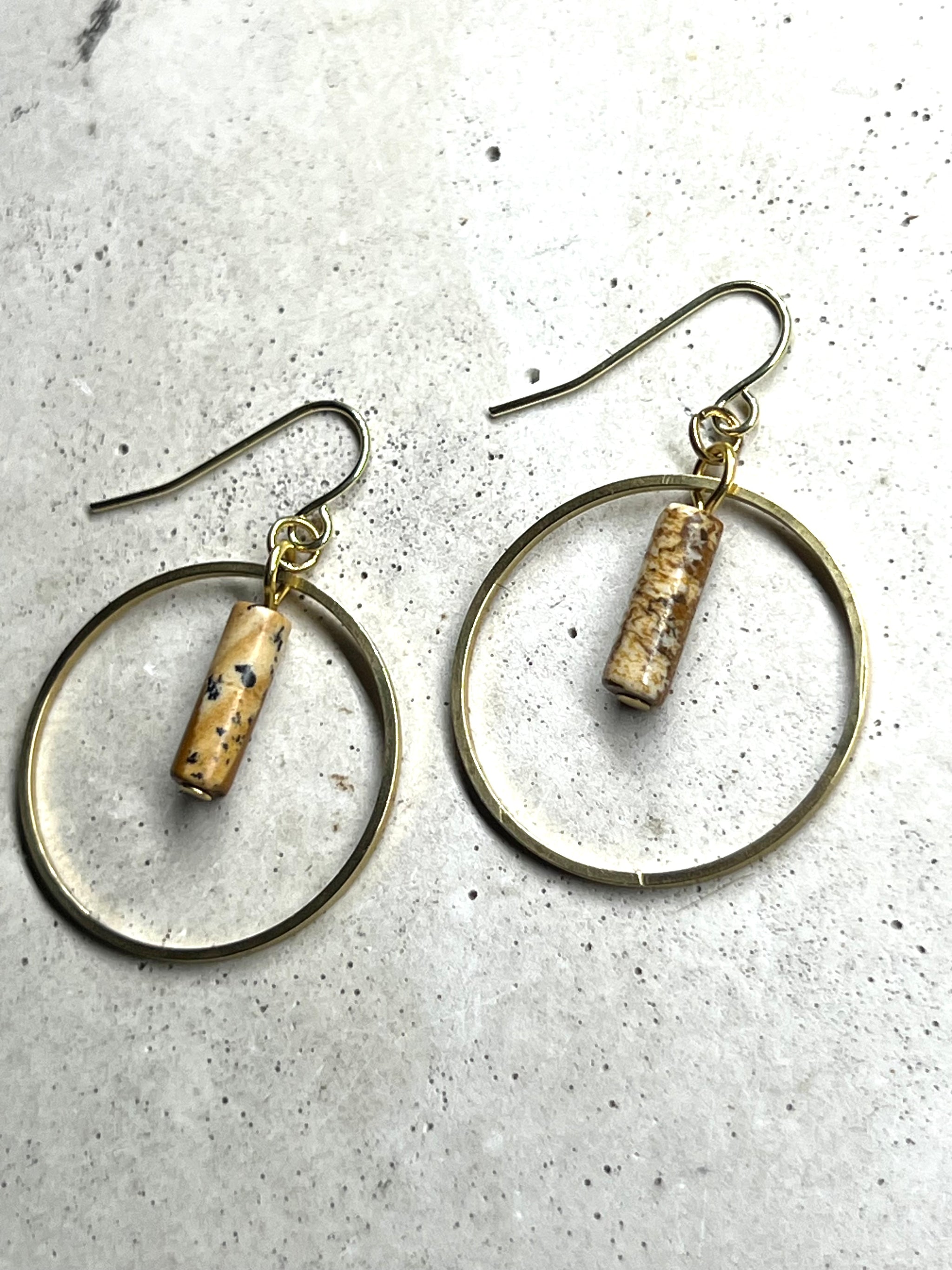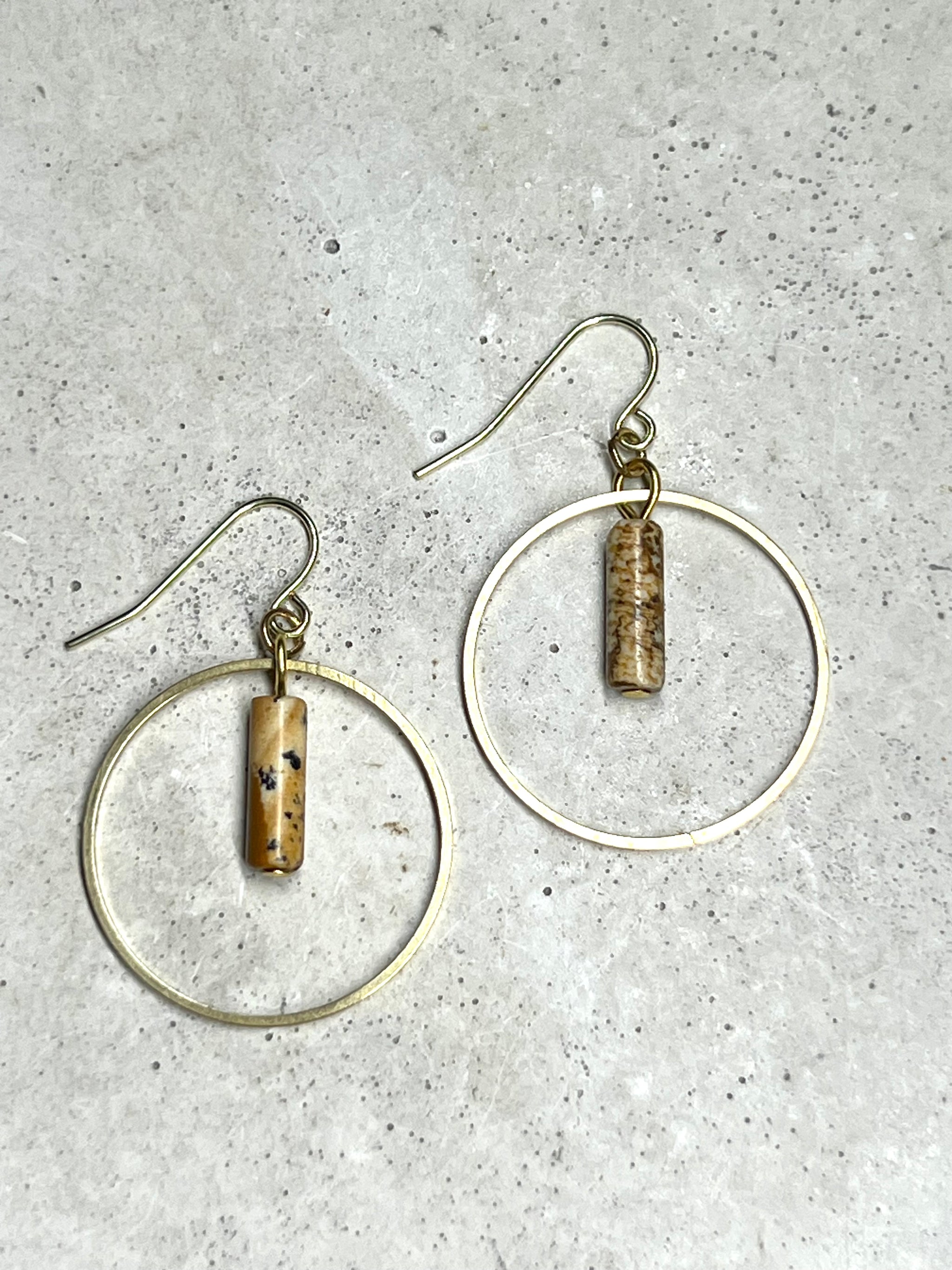 Landschaftsjaspis Circle earrings aus hochwertigem Messing mit 14kt vergoldeten Eco-Silber Ohrhaken.